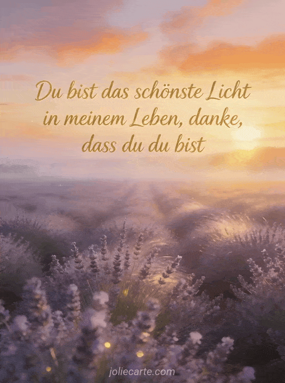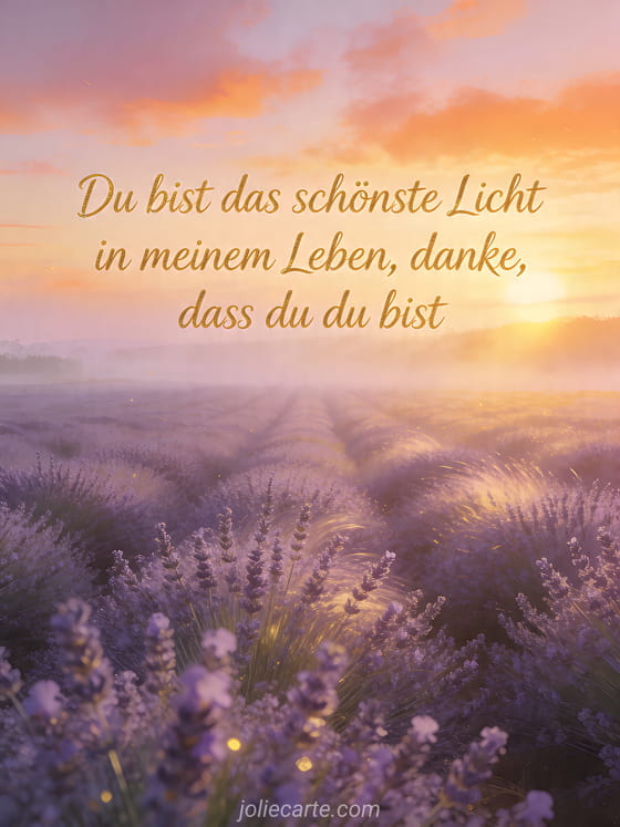 Sende deiner Mama eine tief berührende Geburtstagsbotschaft mit dieser zarten Karte mit Sonnenaufgang über einem endlosen Lavendelfeld im goldenen Licht. Entdecke auch mama geburtstag zeichnung, rührende mama alles gute zum geburtstag karte und herz herz alles gute zum geburtstag mama.