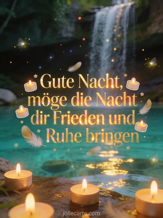 Sende diese schöne Gute-Nacht-Botschaft um Frieden und Ruhe zu wünschen. Entdecke auch eine schöne karte gute nacht küsse oder eine schöne gute nacht nachricht Karte.