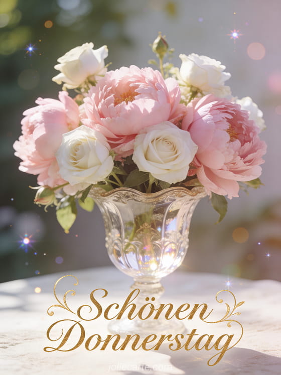 Schöne Karte schöner Donnerstag eine romantische und elegante Donnerstag-Karte mit rosa Pfingstrosen und weißen Rosen