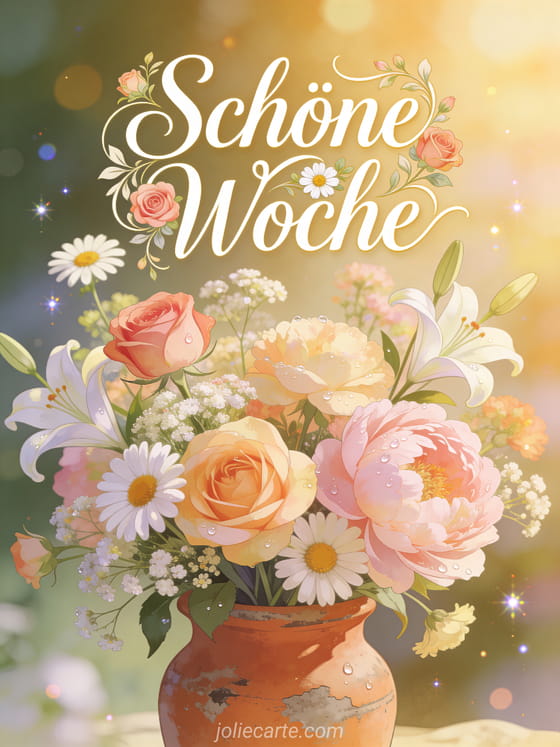 Schick eine bunte schöne Woche Blumen Karte, um jemandem eine lebendige und fröhliche Woche zu wĂŒnschen. Entdecke auch gif schöne Woche Humor oder schöne Woche schönen Tag.