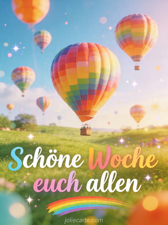 Sende diese Karte mit schöne Woche euch allen und verbreite zum Wochenbeginn Freude und Gemeinschaft. Entdecke auch lustige schöne woche, guten tag und schöne woche oder winterliche schöne woche mit heißem kaffee.