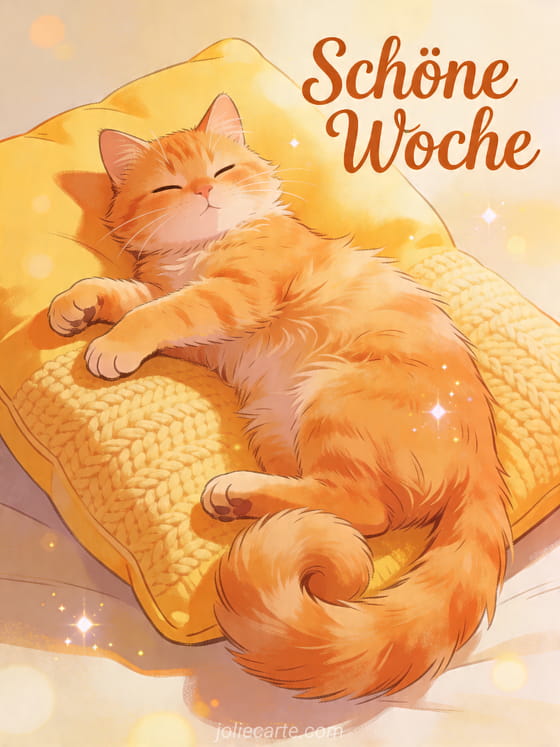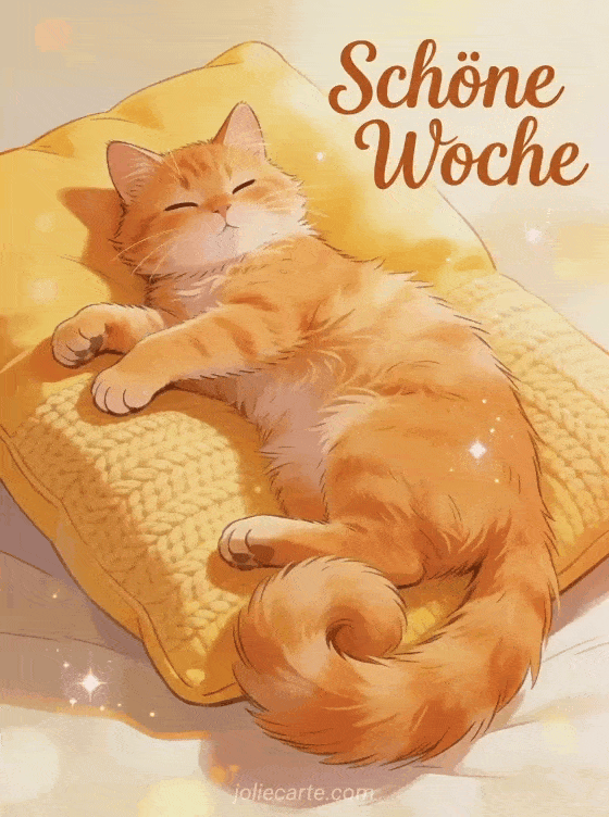 Sende diese schöne Woche Katze Karte und wünsche sanfte, entspannte Tage voller Komfort. Entdecke auch schönen tag schöne woche gif, lustig schöne woche oder schöne woche gifs humor.