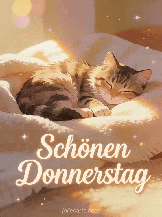 schönen Donnerstag Katze ein gemütlicher Donnerstagsgruß mit einer schläfrigen Katze