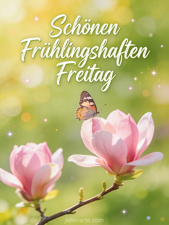 Teile einen schönen schönen frühlingshaften Freitag, um den Frühling und das Wochenende zu feiern. Entdecke auch guten Morgen am Freitag oder schönen sonnigen Freitag.