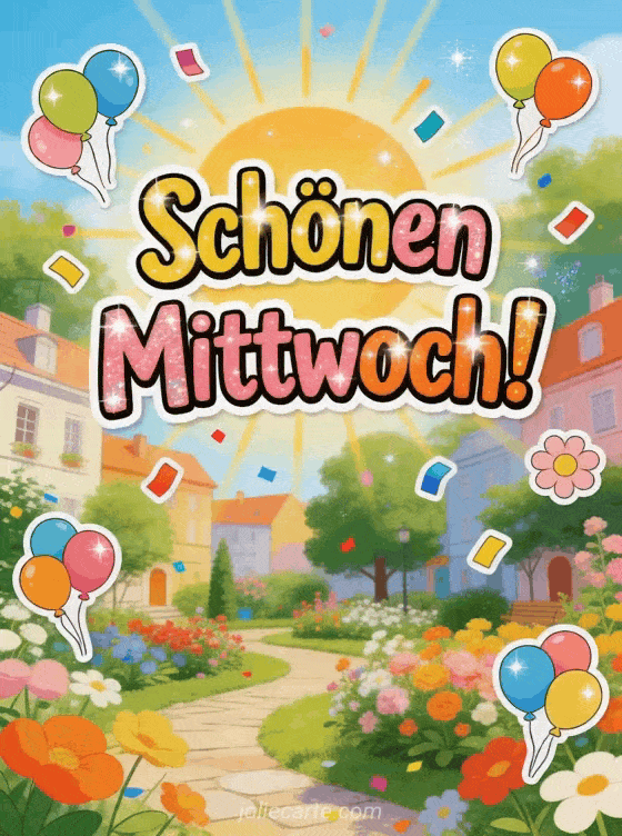 schönen mittwoch ein heller und festlicher mittwochsgruß voller konfetti und sonnenaufgang
