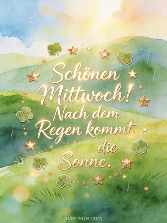Teile diese kostenlose Karte mit Schönen Mittwoch! Nach dem Regen kommt die Sonne. und sende in wenigen Sekunden eine fröhliche Botschaft. Personalisiere sie online und entdecke auch bild guten mittwochabend, schönen mittwoch küsse gif und bild schönen mittwochabend.