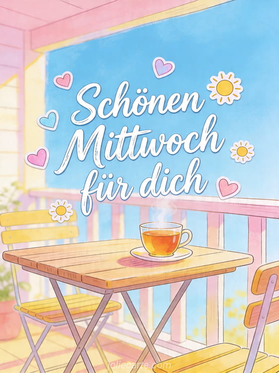 Teile diese kostenlose Karte mit Schönen Mittwoch für dich und sende in wenigen Sekunden einen herzlichen Gruß. Personalisiere sie online und entdecke auch kostenlose schönen mittwoch karte, gif bilder schönen mittwoch und schönen mittwoch botschaft.
