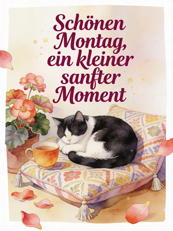 Schönen Montag, ein kleiner sanfter Moment ein zarter Montagsgruß mit einer gemütlichen Katze