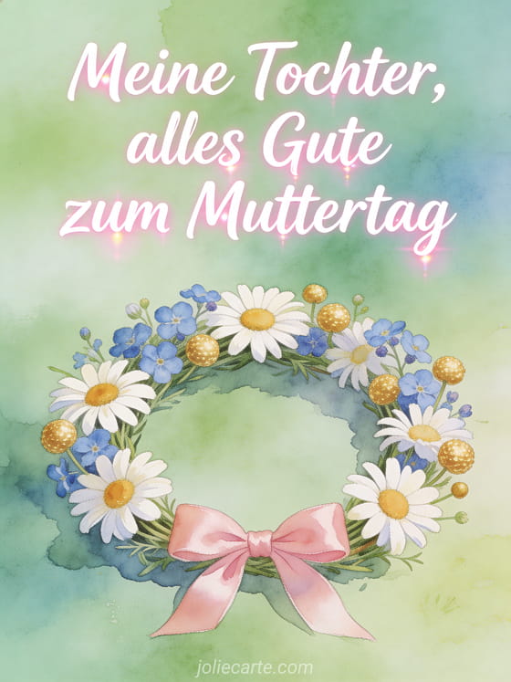 Teile einen zärtlichen Muttertagswunsch für deine Tochter in einer sanften Frühlingsatmosphäre. Entdecke auch E-Card Muttertag, Akrostichon Muttertag und Muttertag Poesie.