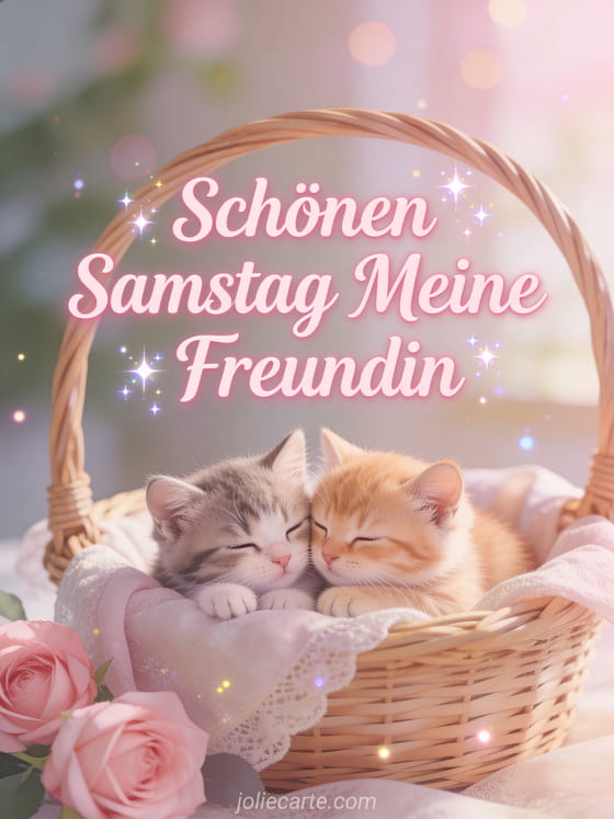 Teile einen zÀrtlichen Samstaggruà mit dieser bezaubernden Karte mit zwei KÀtzchen, die zusammen kuscheln. Entdecke auch eine schönen samstag freundschaft Karte oder eine schönen samstag im regen Karte.