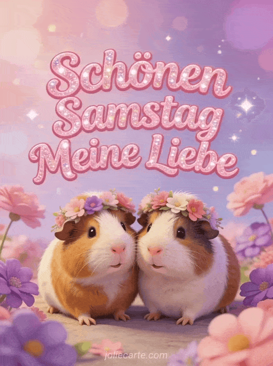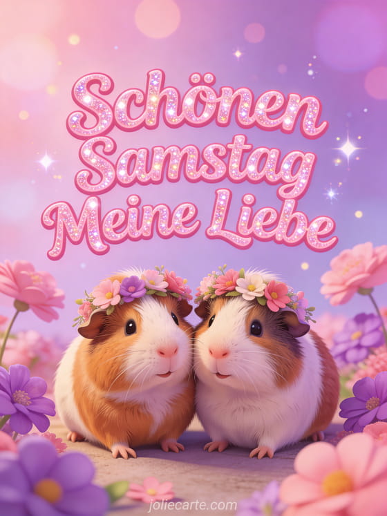 Feiere deine Liebste diesen Samstag mit dieser bezaubernden Karte mit zwei Meerschweinchen, die eine Blumenkrone teilen. Entdecke auch eine schönen samstag und guten tag Karte oder eine schönen samstag positives zitat Karte.