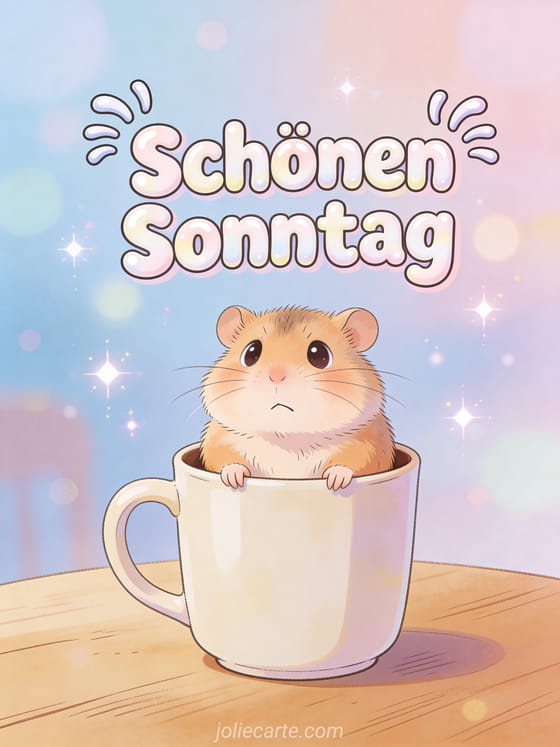 Teile Schönen Sonntag gif Humor mit einem rundlichen Hamster, der in einer Kaffeetasse feststeckt und in einer urkomischen Szene verwirrt schaut. Sende mehr Sonntagslächeln mit schöne virtuelle Karte schönen Sonntag, Zärtlichkeit dicke Küsschen schönen Sonntag Küsschen GIF oder Blumen Sonntag.