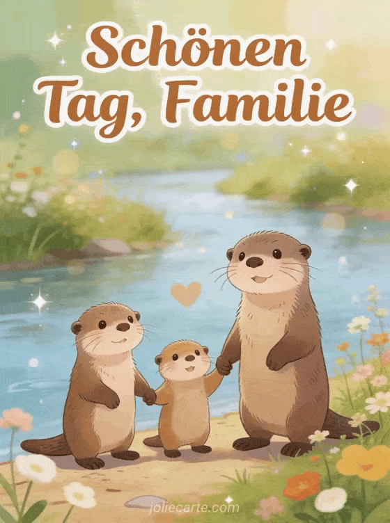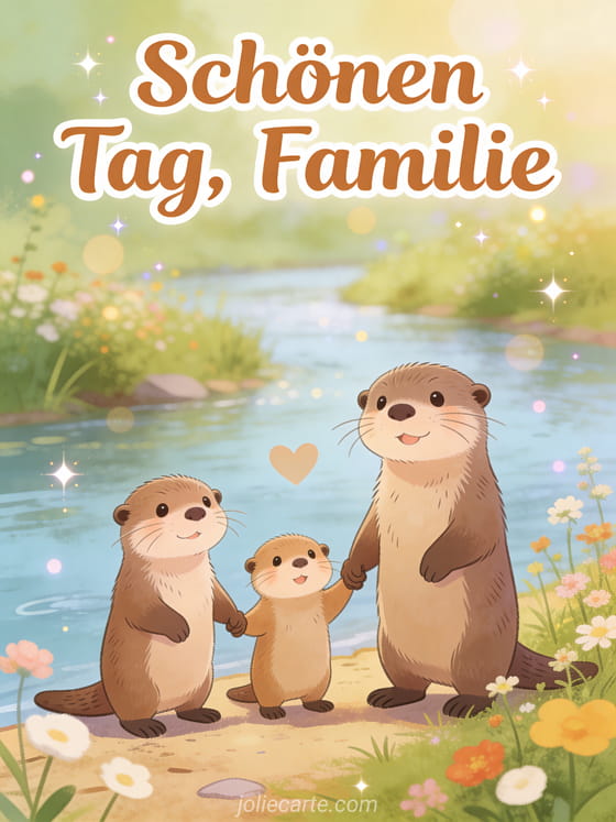 Teilen Sie einen herzerwärmenden Familiengruß mit dieser niedlichen Otter-Familie-Karte. Entdecken Sie auch eine Karte schönen Tag Hase oder eine Karte sonnig gif schönen Tag.