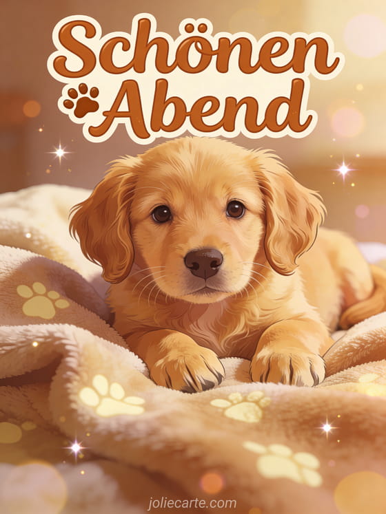 Wärme jemandem den Abend mit dieser entzückenden Karte mit einem süßen goldenen Welpen mit Schlappohren auf einer weichen Decke. Entdecke auch eine Karte schöner Abend Blumen, eine Karte schönen abend und gute nacht küsse oder eine Karte schönen abend freundinnen humor.
