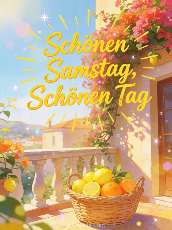Sende mit dieser kostenlosen Karte einen hellen Gruß für einen schönen Samstag und einen schönen Tag voller Zitronen, Orangen und mediterraner Sonne. Entdecke auch schönen samstag schöne bilder schönes wochenende, karte schönen samstag kostenlos oder schönen samstag es regnet.