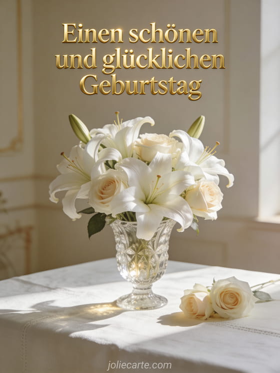 Einen schönen und glücklichen Geburtstag Ein raffinierter und herzlicher Geburtstagsgruß mit floralem Stil.