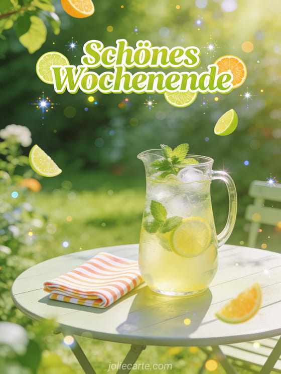 Teile ein erfrischendes Wochenende mit dieser fröhlichen Karte. Entdecke auch eine schönes wochenende euch allen oder bilder schönes wochenende.
