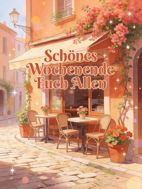 Teile einen herzlichen Wunsch für ein schönes Wochenende an alle und erfreue jemanden. Entdecke auch Bilder schönes Wochenende oder eine schöner Abend und schönes Wochenende Karte.
