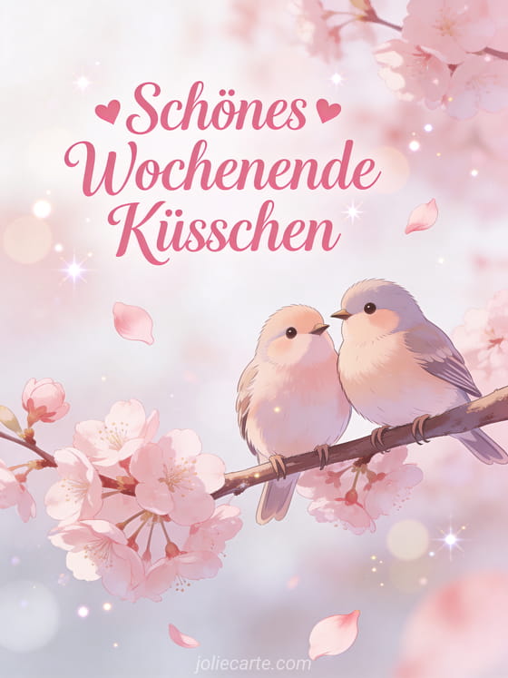 Schick ein zartes schönes Wochenende Küsschen, um deine Zuneigung zum Wochenende auszudrücken. Entdecke auch schönes Wochenende relax oder habt ein schönes Wochenende.
