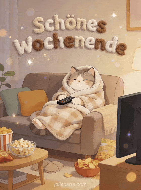 Schoenes Wochenende ein gemuetlicher Gruss fuer ein entspanntes Wochenende
