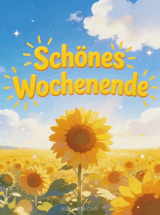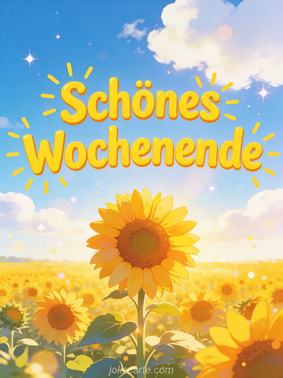 Wünsche jemandem ein wunderbar positives Wochenende mit dieser leuchtenden Sonnenblumenfeld-Karte. Entdecke auch eine schönes Wochenende verbringen Karte oder eine schönes Wochenende Karte.