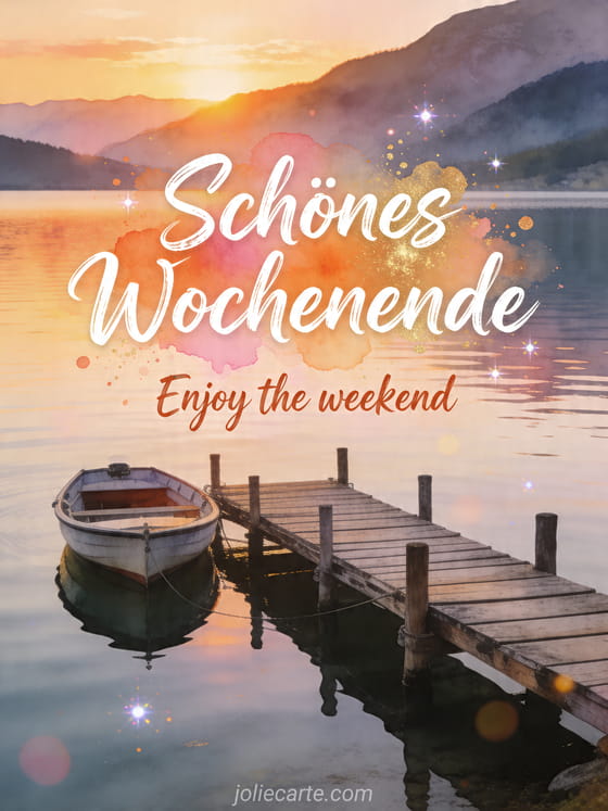 Verschicken Sie mit dieser kostenlosen Karte einen Wunsch für ein schönes Wochenende und teilen Sie eine ruhige Abendstimmung am See. Entdecken Sie auch humor schönes wochenende foto, sonniges schönes wochenende humor oder humor schönes wochenende gif.