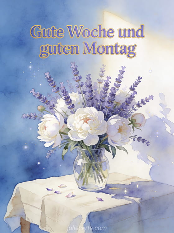Schicke diese schöne Grußkarte, um jemandem einen guten Montag und eine tolle Woche zu wünschen. Entdecke auch eine Karte schöner Montag gute Woche oder eine Karte schöner Montag Küsschen.