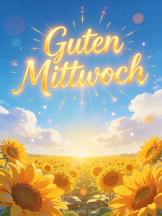 Erhelle den Mittwoch von jemandem mit dieser strahlenden Sonnenblumenfeld-Karte. Entdecke auch eine Karte Fotos guten Mittwoch oder eine Karte guten Mittwoch Januar.