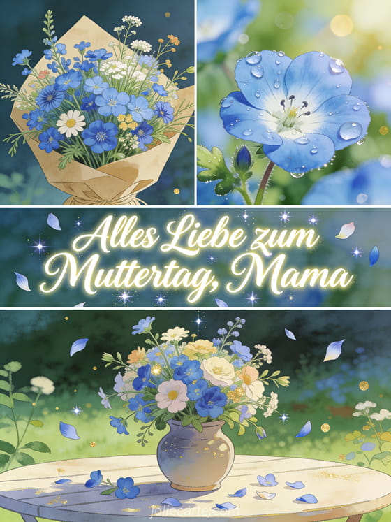 Sende diese Muttertagskarte mit Blumenstrauß und schenke deiner Mama Freude. Entdecke auch süße Worte für Muttertag, Grußkarten für Muttertag und Liebestext Muttertag.