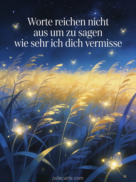 Sende diese magische und poetische Karte, um jemandem zu zeigen, wie sehr er dir fehlt. Entdecke auch eine Karte du fehlst mir ich liebe dich oder ein Gedicht du fehlst mir mein Herz.