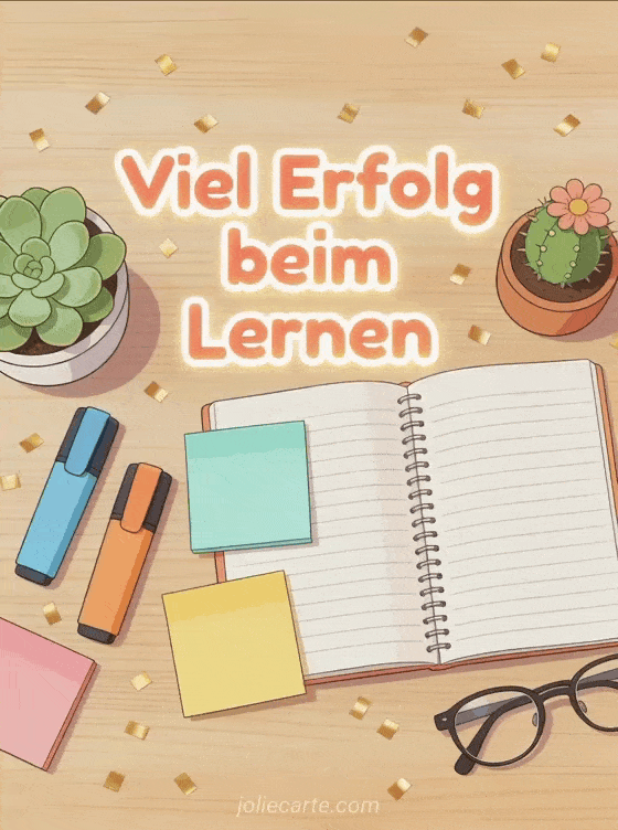 Viel Erfolg beim Lernen eine motivierende Lernkarte mit einem bunten organisierten Schreibtisch