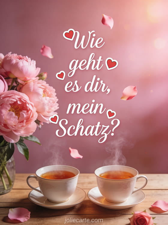 Frage liebevoll wie geht es dir mein Schatz mit dieser romantischen Grußkarte. Schau auch mal bei hallo ich wollte sehen wie es dir geht oder mir geht es gut danke vorbei.