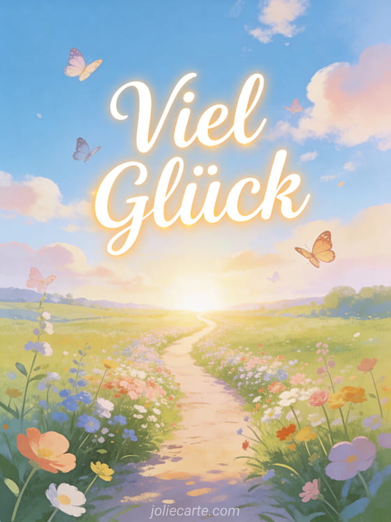 Teile diese wunderschöne Frühlingslandschaftskarte mit der Nachricht 'Viel Glück' und ermutire jemanden auf seinem Weg. Entdecke auch Viel Glück und Erfolg oder jemandem viel Glück wünschen.
