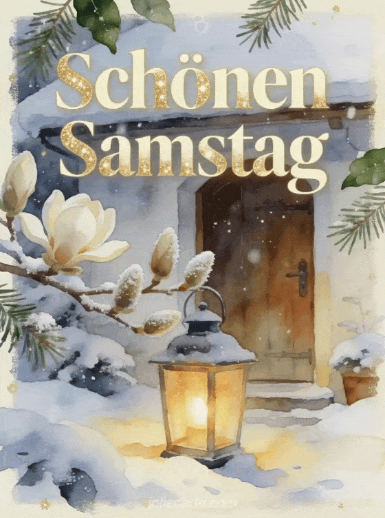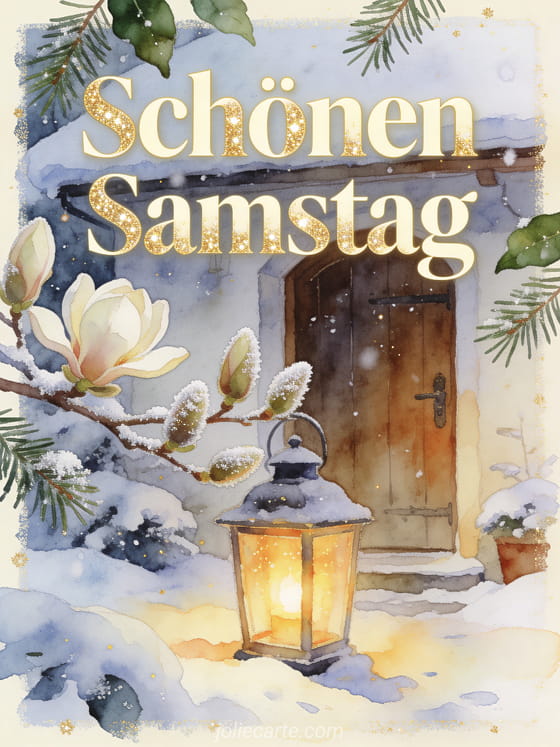 Sende einen herzlichen Samstagsgruß mit einer schneebedeckten Hüttentür, einer leuchtenden Laterne und bereiften Magnolienknospen. Entdecke auch guten morgen und schönen samstag gifs, schönen Samstag meine Freundin Bild oder schönen Samstag romantisches Bild.