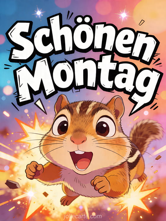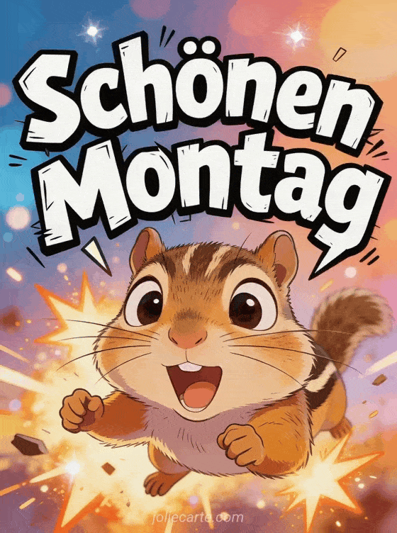 Verschicke eine Schönen-Montag-Karte mit einem dramatischen Streifenhörnchen im Meme-Stil für einen leichteren Wochenstart. Entdecke auch guten morgen und schönen montag, viel kraft lustig schönen montag und guten morgen montag.
