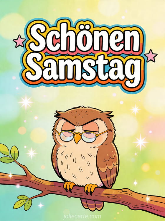 Schönen Samstag ein humorvoller Samstagsgruß mit einer schläfrigen Eule