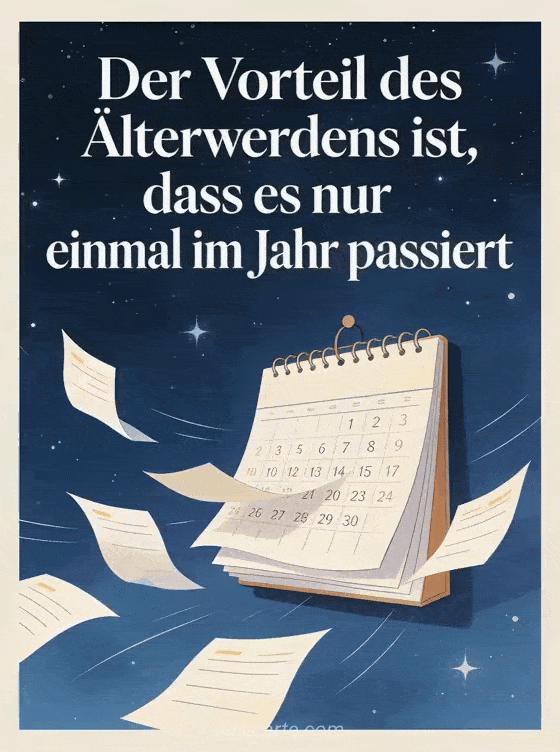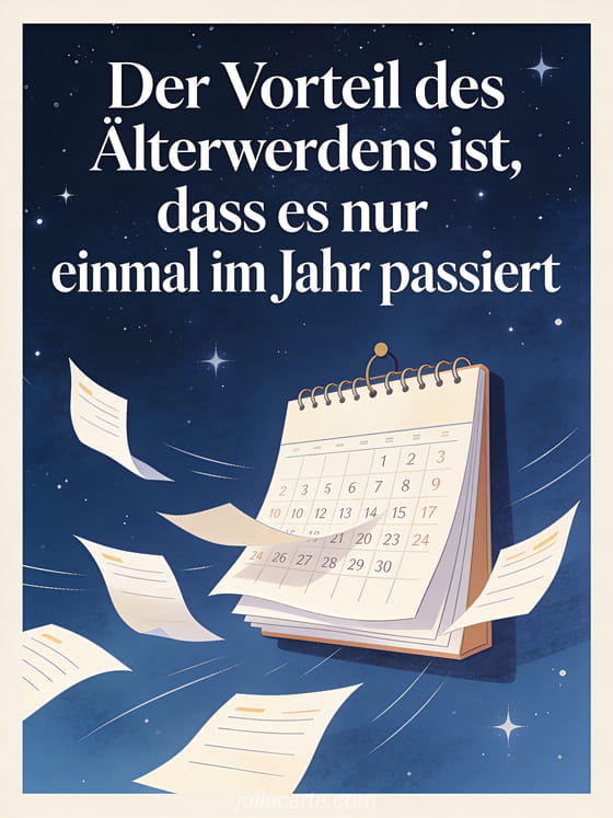 Sende diese witzige Geburtstagskarte mit einem humorvollen Spruch unter einem Sternenhimmel mit fliegenden Kalenderseiten. Entdecke auch einen witziger Geburtstagstext oder eine lustige frau alles gute zum geburtstag humor.