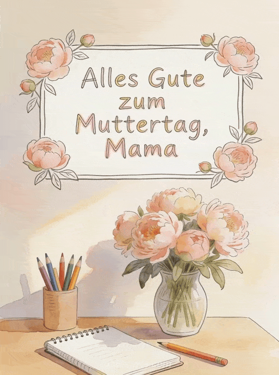 Mit dieser liebevoll gezeichneten Muttertagskarte schenkst du deiner Mama Freude und Wärme. Entdecke auch alles Liebe zum Muttertag an alle Mamas, frohen Muttertag Bild und Karte für Mutter Feier.