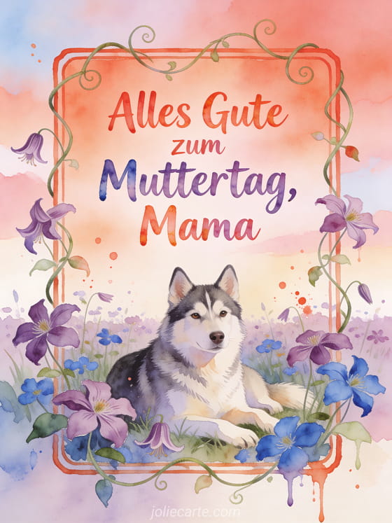 Teile eine zarte Muttertagsbotschaft mit handgemalter, warmer und fröhlicher Ausstrahlung. Entdecke auch Muttertagskarte Küsse, Muttertag trauernde und romantischer Muttertag.