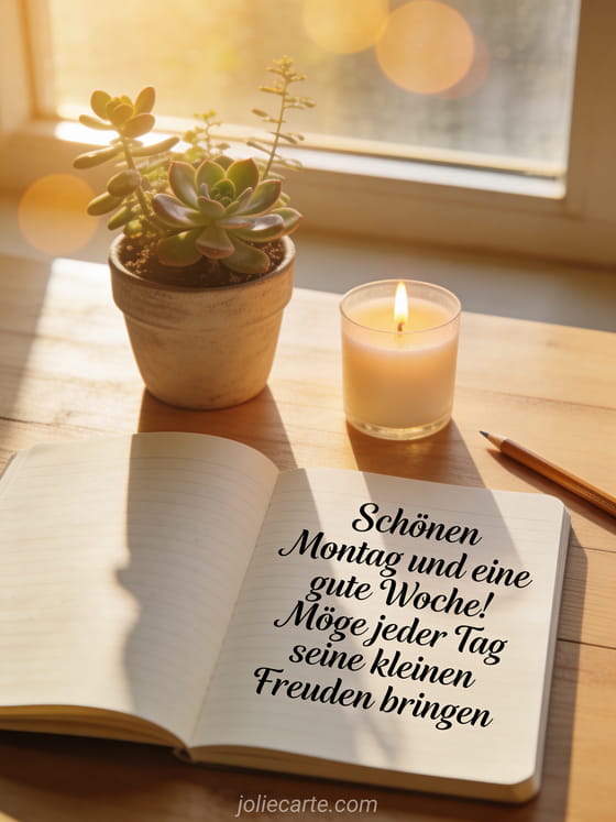 Schicke diese herzliche Karte, um jemandem einen guten Montag und eine wundervolle Woche zu wünschen. Entdecke auch eine Karte SMS gute Woche und guten Montag oder eine Karte schöner Montag gute Woche Bild.
