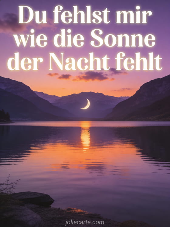 Schicke dieses berührende Sehnsucht-Zitat für die Fernbeziehung und drücke deine Gefühle mit einem poetischen Bild aus. Entdecke auch eine Nachricht Liebe auf Distanz oder eine schöne Karte Liebe auf Distanz.