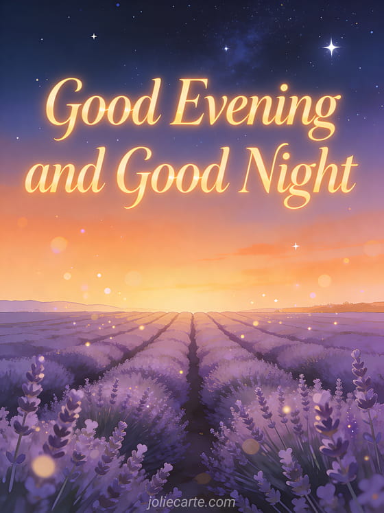 Send a serene good evening and good night wish with this stunning lavender field twilight greeting card. For more nighttime wishes, discover a good night card, a good evening and good night greeting or a good night kisses card.