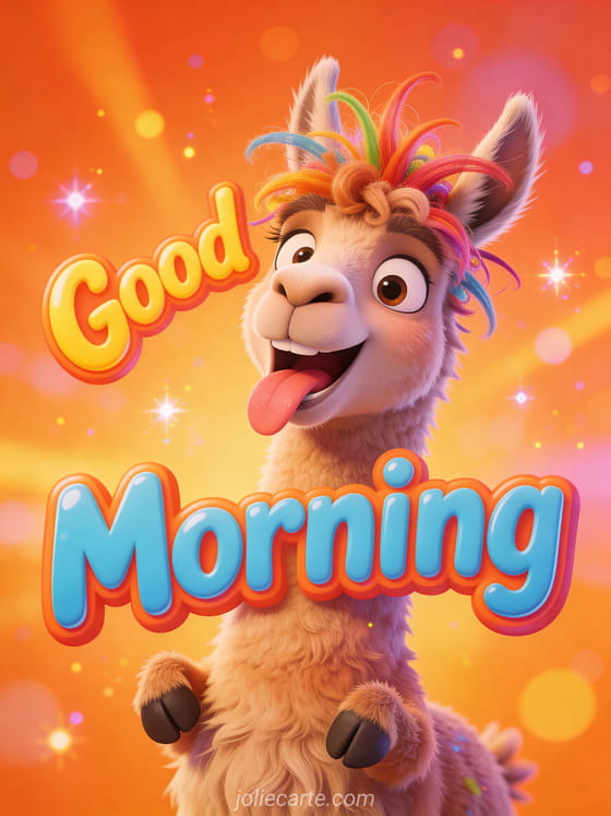 Send a hilarious good morning to kick off the day with a big laugh and goofy vibes. Discover also a touching morning message, a tender morning greeting or a humorous good morning card.