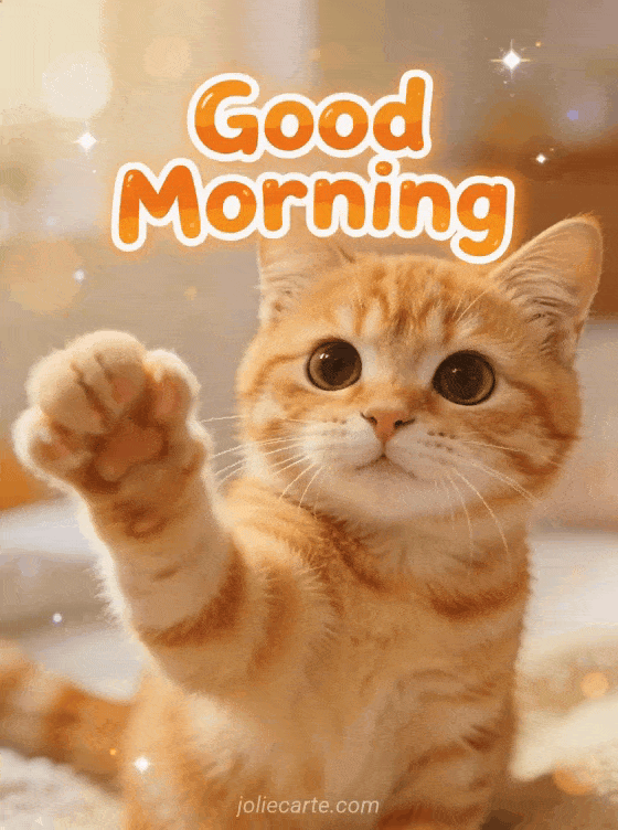 Good morning a charming cat greeting to start your day