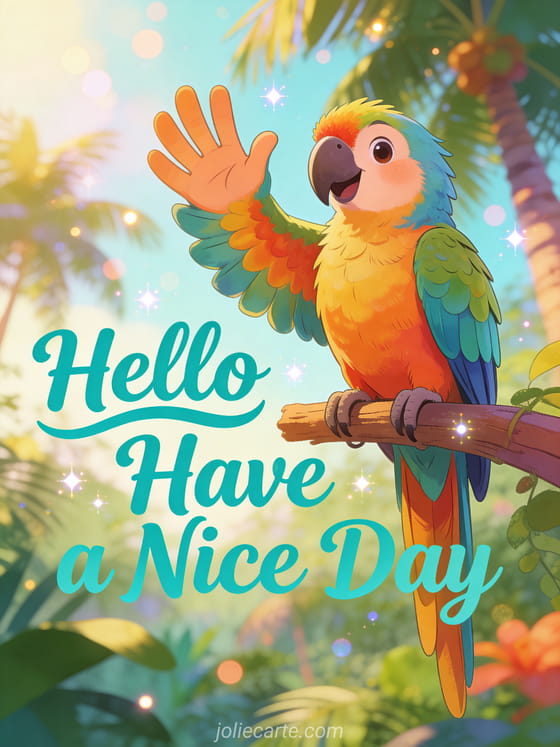 Brighten someone's morning with this cheerful hello have a nice day greeting card. A cute parrot waves hello from its tropical perch, spreading good vibes. Also check out a kisses have a nice day card or a good day ecard.