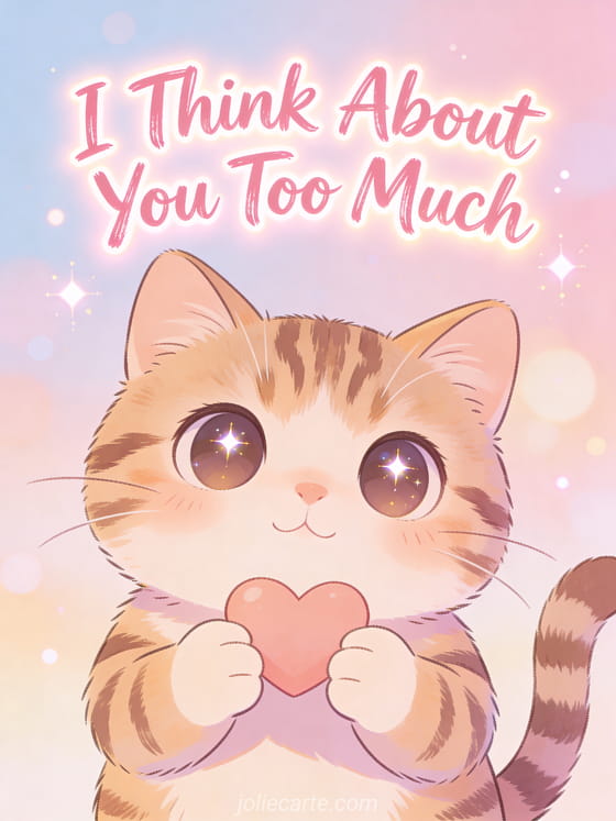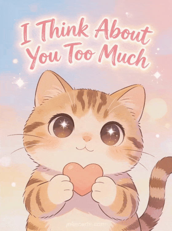 Send an adorable thinking of you too much message to someone you can't stop thinking about. Discover also a thinking of you non stop card, a funny thinking of you card or a thinking of you so much card.