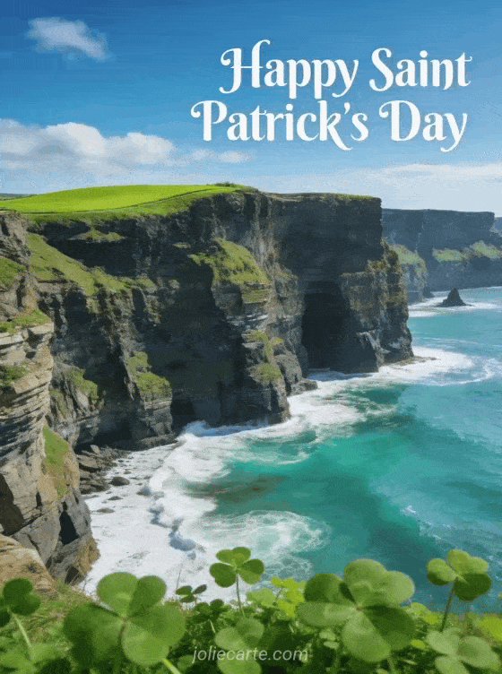 Happy Saint Patrick's Day spectacular Irish cliffs plunging into turquoise waters