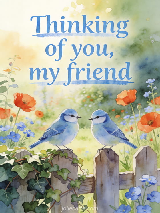 Send a heartfelt thinking of you message to a dear friend. Let them know they hold a special place in your heart. Discover also a thinking of you card or a I haven't forgotten you thinking of you card.