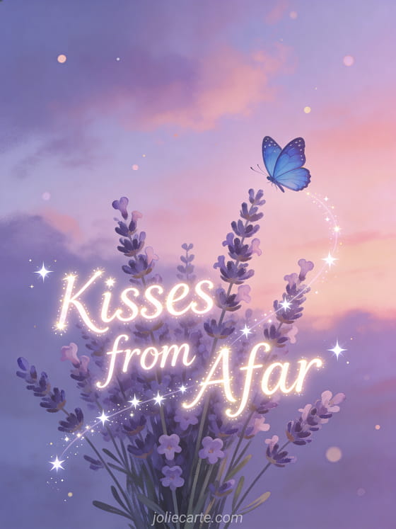 Send sweet kisses from afar to someone special with a poetic and dreamy greeting. Discover also a sweet kisses card or a cute kisses image.