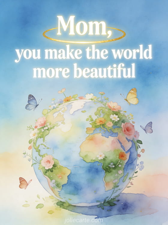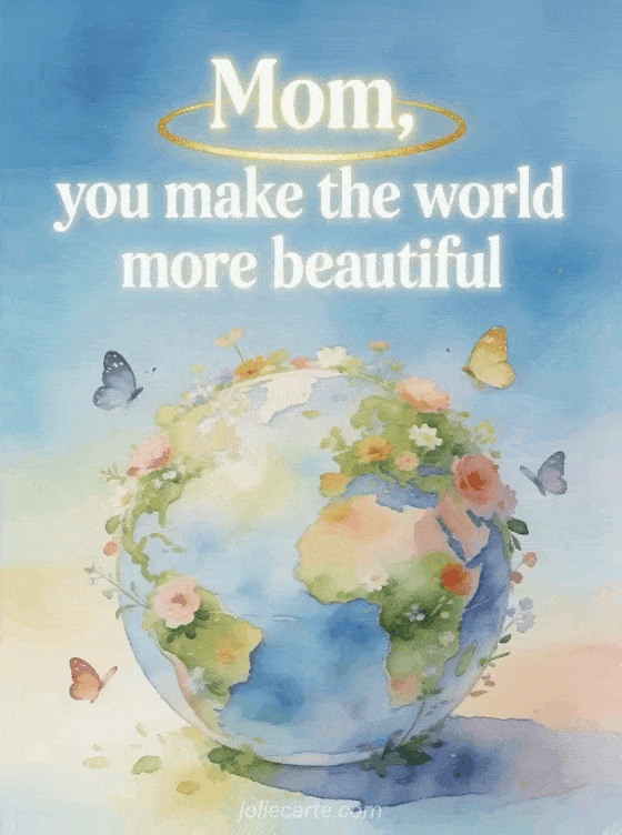 Tell your mom she makes the world more beautiful with this poetic and tender greeting. Discover also a Mother's Day card PS, a joyful Mother's Day card or a free Happy Mother's Day image.